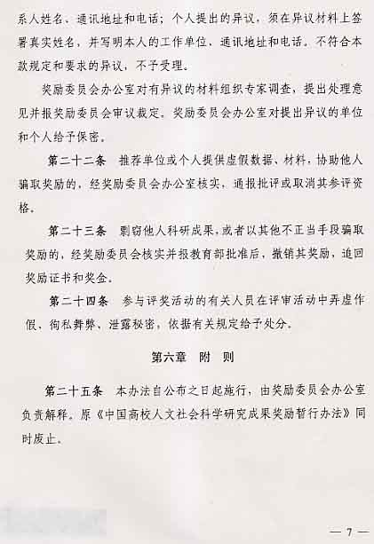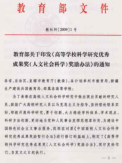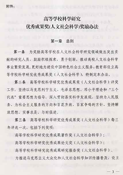 教育部《高等学校科学研究优秀成果奖(人文社会科学)奖励办法》