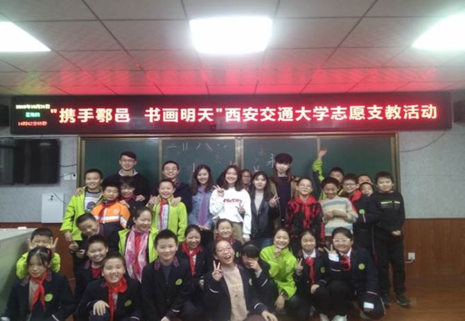 硕9105、9108党支部的六名同学进入西安市鄠邑区西街小学进行支教活动。书法、绘画专业的同学们分别结合自己的专业,向小朋友们讲解硬笔书法与简笔画的相关知识,并且针对他们书画中存在的问题进行耐心讲解与悉心辅导。小朋友们在自己最满意的作品后,以最淳朴的微笑回馈志愿者带给自己的难忘和感动。