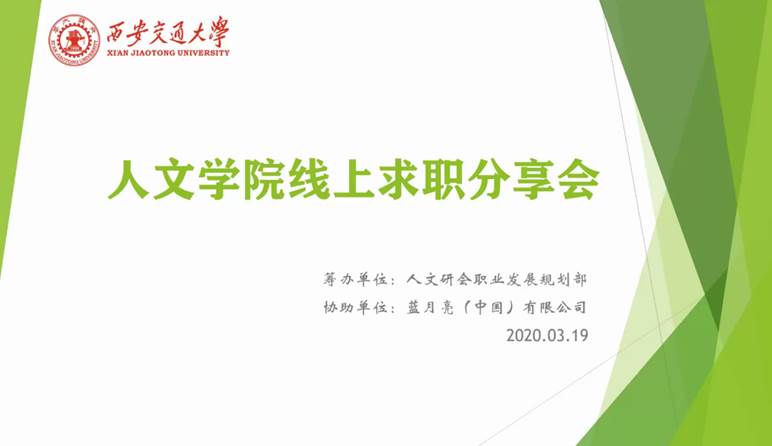 邀请蓝月亮(中国)有限公司人力资源部校园招聘主任张永欢女士,通过视频会议的方式,进行了一场线上求职分享会。主讲人张老师从业多年,在校园招聘面试及校园人才测评领域有着独到、专业的见解,在简历制作和面试方法等方面为同学们进行了培训和指导。