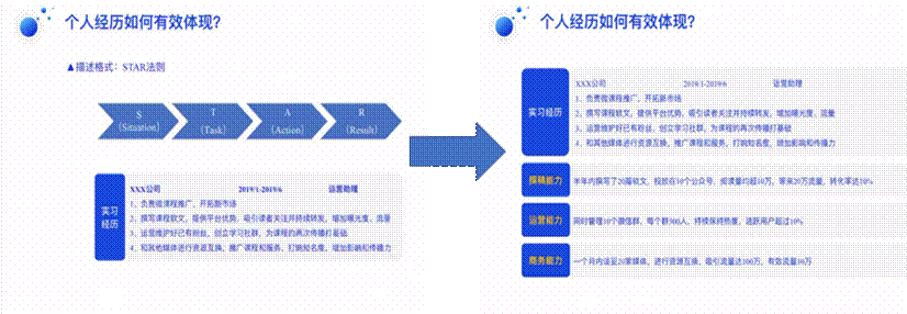 首先,张老师向同学们介绍了简历的内容及制作原则。在简历的制作过程中,要明确自己的求职方向,做好规划、找准定位,做出正确的选择。一定要牢记简历制作的三个原则——简洁严谨、有针对性、真实客观。而在具体的内容填写中,注意体现自己的个人经历,这一点可以遵循STAR原则。