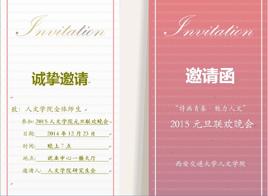 诗画青春·魅力人文”2015元旦联欢晚会邀请函