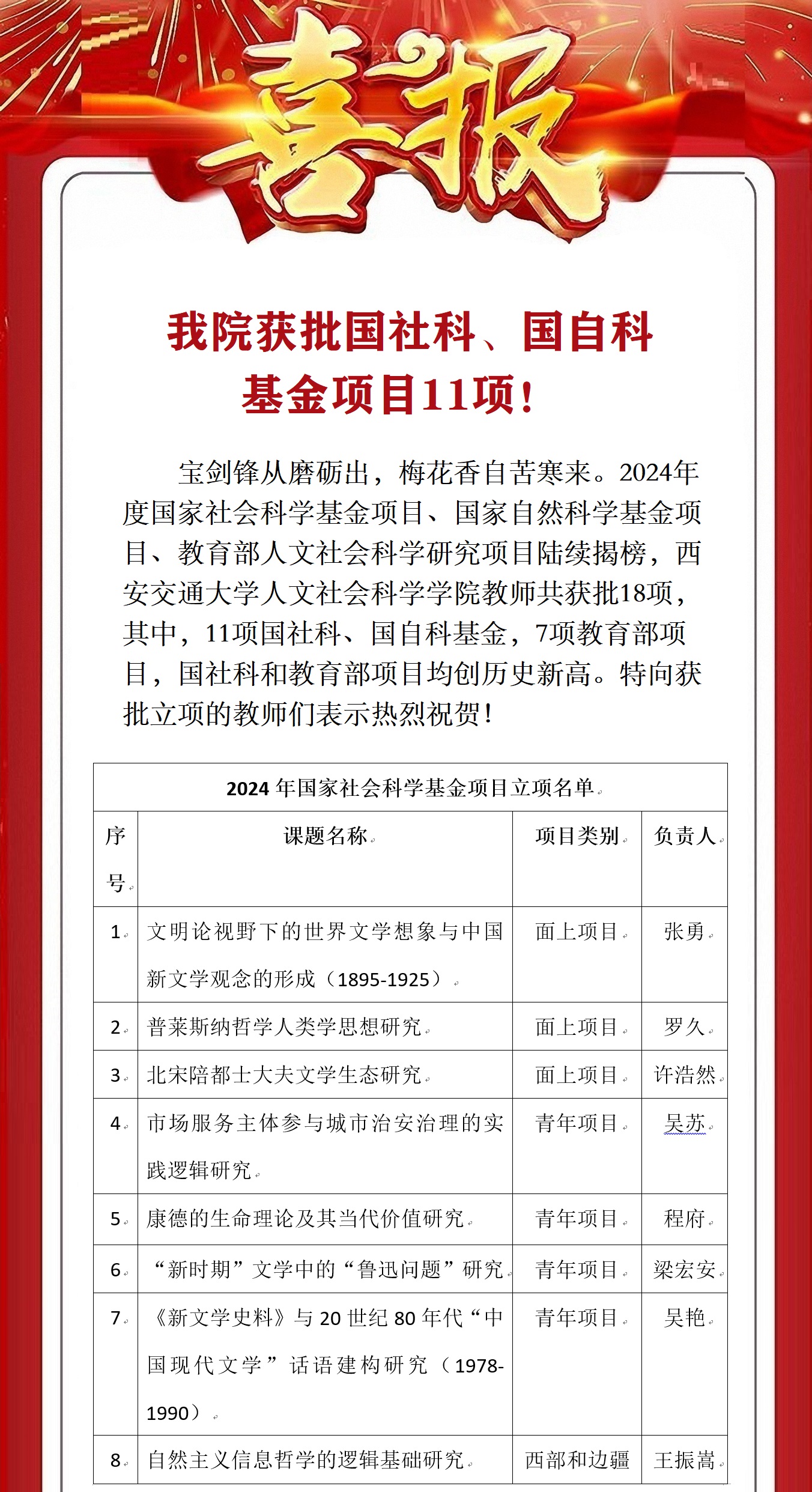 【喜报】我院获批国社科、国自科基金项目11项!