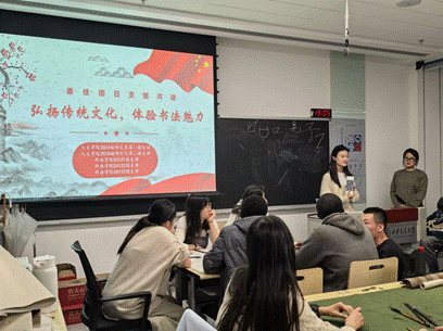 2024级研究生第二团支部,外国语学院硕4121班团支部、硕4122班团支部、硕4123班团支部,在力行楼2-6002共同举办了“弘扬传统文化,体验书法魅力”主题团日活动。本次主题团日活动旨在通过带领青年团员体验书法艺术,增进团员们对中华传统文化的了解与热爱,激发团员们在新时代弘扬传统文化的责任感与使命感。活动由成人影视片