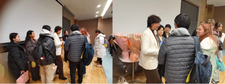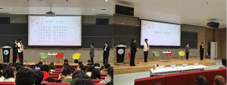 论坛最后,赵力为三位女嘉宾每人赋词一首(赋词三首附后),学生代表分别向四位女嘉宾献花,并与所有受邀嘉宾一同合影留念。会后,很多学生围饶着四位女嘉宾进行了热烈且深入的讨论,不少留学生也参与到讨论中,向老师们请教年轻人应该如何主动规划人生、如何平衡学习、科研以及生活等话题,师生们在思想的碰撞中寻得共鸣。此次论坛的智慧火花,在掌声中落幕,却在学子们的心中点燃了不灭的火炬。愿每一位学子能够将今日的启迪化为明日征途上的星光,不断激励自己前行的脚步。