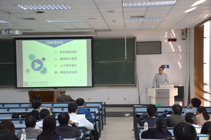 院长助理张科汇报人才队伍建设工作。张科展示了队伍建设目标和执行情况,明确了学院队伍建设工作重心和思路。张科详细解读了人才项目的年度工作安排,指出学院将持续推进青年教师成长路径分析和诊断规划,培育高层次人才。最后,张科为与会青年教师分析聘期考核流程,强调青年教师要重视高质量学术成果产出。