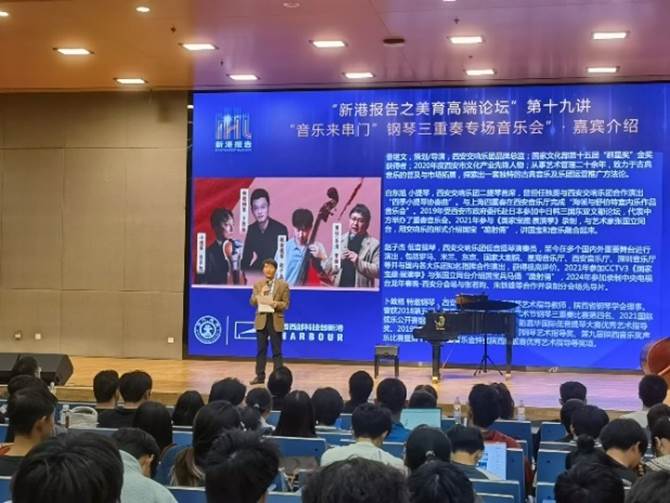 三部门联合举办的新港报告美育高端论坛第十九讲在新港报告厅火热开讲。XSO西安交响乐团室内乐组为交大师生带来名为“音乐来串门”的专场音乐会,吸引了500余名校内外师生现场聆听,现场座无虚席。校工会主席弋景峰、副主席谢志锋参加了本次论坛,成人影视片