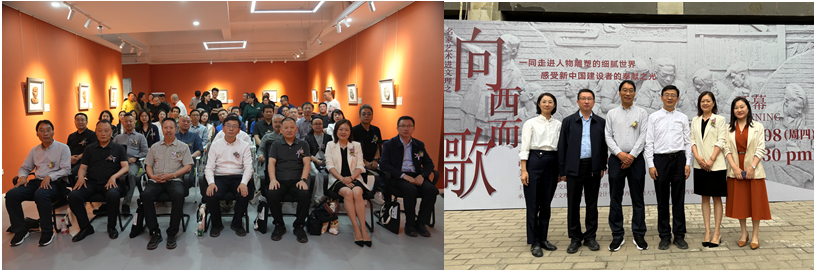 党委书记纪梦然、校友关系部主任许佳辉、党委宣传部副部长史瑞琼、党委统战部副部长程洪莉等主办单位领导和来自西安美术学院、西安各高校艺术学院及各界学者、艺术家齐聚一堂,共同见证这场艺术与精神交融的文化盛宴。开幕式由西安文理学院美术与设计学院副院长刘小飞主持,会场内气氛热烈,洋溢着对艺术与西迁精神的崇敬与期待。