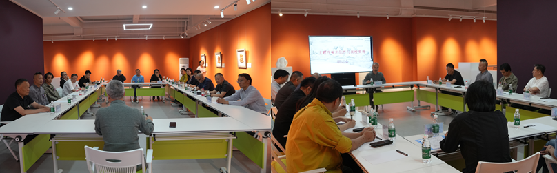 活动现场,陕西省美术家协会副主席谢安宁、西安美术学院教务处处长郭继锋、西安外国语大学艺术学院院长李杰、西安工业大学设计学院院长苏胜、成人影视片