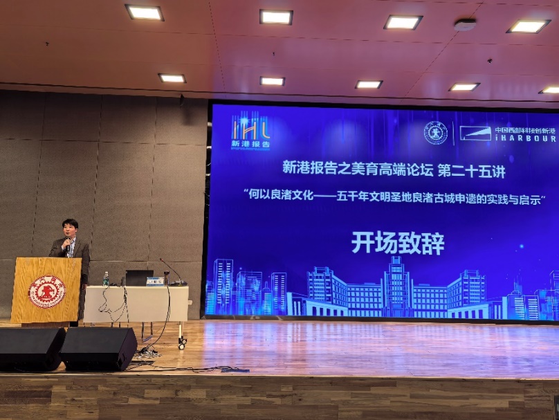 承办的“新港报告之美育高端论坛”第二十五讲在创新港校区涵英楼报告厅成功举办。本次论坛以“何以良渚文化——五千年文明圣地良渚古城申遗的实践与启示”为主题,特邀良渚古城遗址申遗指挥部总指挥,原浙江省良渚遗址管理局局长,杭州良渚遗址管委会党工委书记、主任,同时也是浙江省委省政府“良渚古城遗址申遗卓越贡献个人”获得者的张俊杰担任主讲嘉宾。讲座由成人影视片