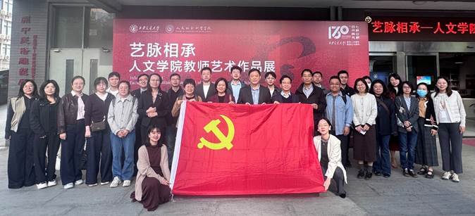 教师艺术作品展”。展览荟萃了艺术设计系、中国书法系23位教师的87件书法、绘画及雕塑精品。党员们驻足于笔墨丹青与刀痕塑影之间,不仅领略了中华优秀传统文化的独特魅力,更在艺术的熏陶中感悟交大人文精神的深厚积淀,为后续的学科交流与思想碰撞奠定了情感基调。