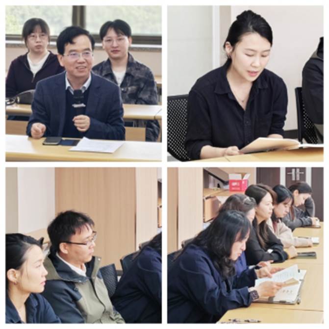 随后,艺术设计系教师吴雪、社会心理学研究所教师李占星、社会心理学研究所所长钱玉燕和机关党支部张舒婷四位党员原原本本领读了《习近平关于树立和践行正确政绩观论述摘编》中“推动管党治党责任落实到位”章节。全体党员逐段研读、深入领会,一致认为管党治党责任是根本的政治责任,必须坚持严的基调,将抓党建与促业务、强担当、重实效紧密结合,层层传导压力,压紧压实责任,为学院高质量发展提供坚强政治保障。