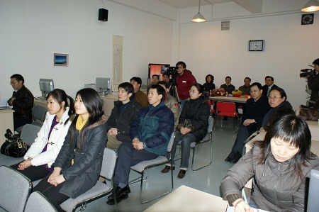 中文系副主任、“多媒体工作坊”项目负责人杨琳教授向与会领导、嘉宾汇报了工作坊从创办到建成的工作情况。“多媒体工作坊”是在教育部设备项目《人文艺术类课程资源库与信息系统建设》基础上建成的。旨在充分发挥我校理工学科优势特点,遵照新闻、传播规律,利用计算机进行控制并综合处理相关课程体系所包括的文字、声音、图形、动画以及电视图像等各种教学内容信息,不仅为传播学和汉语言文学专业相关课程提供辅助教学和实验平台,从而实现由知识传授到培养创造性人才的教学转变。同时还服务于全校的人文素质教育活动,满足理工专业学生对创造思维能力与意象思维能力培养的要求。程光旭副教务长对实验室的功能定位、发展思路等给与了全方位指导和支持。
