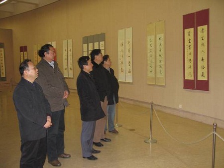 艺术馆在省美术博物馆联合举办了“钟明善教授从教五十年书画作品展”。本次展览共展出钟明善教授从教50年来不同时期的书画精品160幅以及最新书学著作12部。在展览当天举行的新闻发布会上,钟明善教授向陕西省美术博物馆无偿捐赠了丈二规格篆书陆放翁《楼船铁马》对联、六米多长的行书手卷《琵琶行》以及四尺墨竹《斜风细雨过长安》等3件价值约60万元的巨幅书画作品,表达了钟明善教授对陕西艺术事业的深情厚爱和大力支持。