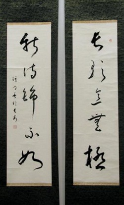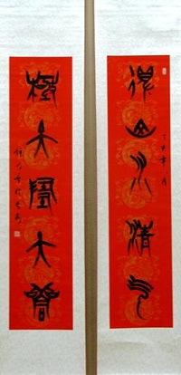 展出的钟明善教授篆书对联 展出的钟明善教授草书对联
