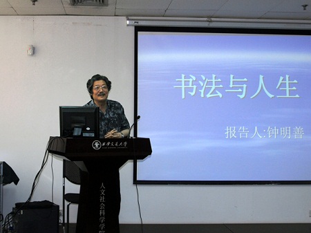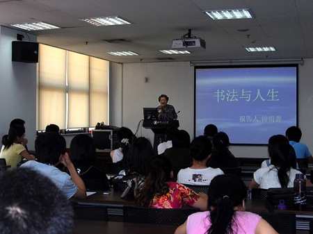 中国书法系全体师生齐集主楼E-703,倾心聆听全国“五一劳动奖章”获得者钟明善教授的精彩讲座。