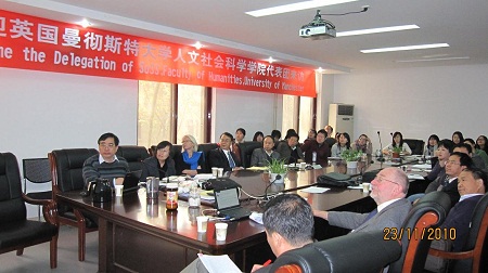 下午三时许,曼彻斯特大学学术项目座谈会在主楼E703室召开。Fiona Devine教授向来自经济与金融学院、外语学院、管理学院、公管学院、法学院以及成人影视片