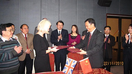 目前的学科建设,科研方向,以及对外交流学习的情况。边燕杰认为,此次交流是个良好开端,他希望双方今后有更广泛的合作发展机会。 Fiona Devine教授也表示,两校均属综合性大学,在各个方面都可以互相学习,共同进步。随后,两校的院长在科学馆107会议室签署了社会学硕士联合培养协议,交换礼物,并合影留念。