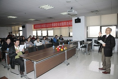 副院长李建群教授主持,李教授和广大师生一起对纐缬厚教授的到来表示热烈的欢迎,就纐缬厚教授在中日关系研究中的卓越成就进行了简单介绍。
