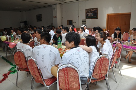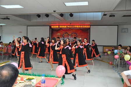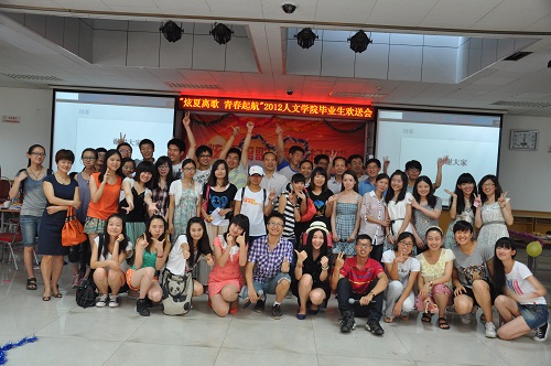各系所主任、院务教师、任课教师、辅导员教师代表等二十余人莅临欢送会现场与毕业生欢聚一堂,共同庆祝2012届人文学子圆满完成学业。