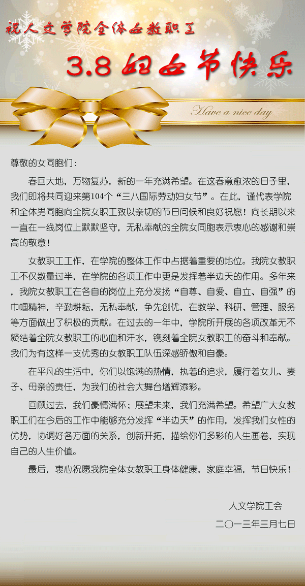 祝成人影视片 全体女教职工节日快乐!