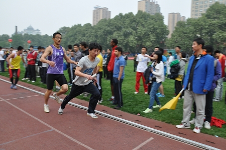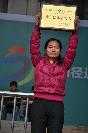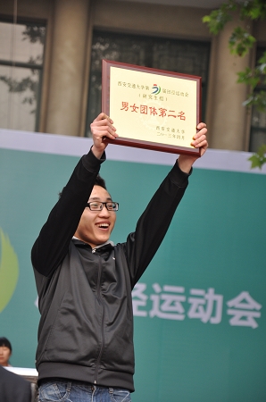 在集体项目的比赛中,男女4×100和4×400接力均取得第一名,20*100穿梭接力取得第三名,12人跳大绳比赛取得第7名;在个人比赛中,张婧在女子100米和200米比赛中取得第一名;王真在男子100米和400米比赛中取得第一名,并在男子100米比赛中以10.5秒的好成绩打破10.6秒的原陕西省高校乙组纪录;在男子800米比赛中,李浩同学取得第一名;男子三级跳和跳远,蔡祥雨取得第一名。此外,亢迪、荆雪子、李浩等几位同学虽然在比赛中腿部受伤,但他们依然坚持参加完了所有比赛,并取得了非常好的成绩。他们这种责任感和拼搏精神值得我们每个人学习。