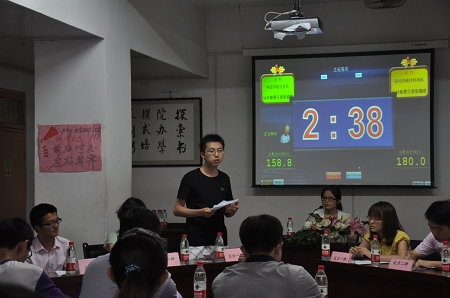 6月3日四个代表队的代表由抽签决定了辩题和对阵双方,在紧张的准备了2天后,于6月6日晚7点在文治书院报告厅举行了初赛。初赛分为上下两个半场,上半场是电信学院代表队对阵能动机械材料联队,辩题为:反对浪费主要依靠道德约束还是制度约束。对阵双方实力较为悬殊,能动机械材料联队从一开始就掌握主动权,并一直紧咬对方漏洞不放,最终获得了胜利,电信学院的何阳同学获得了最佳辩手;下半场是管理学院代表队对阵成人影视片