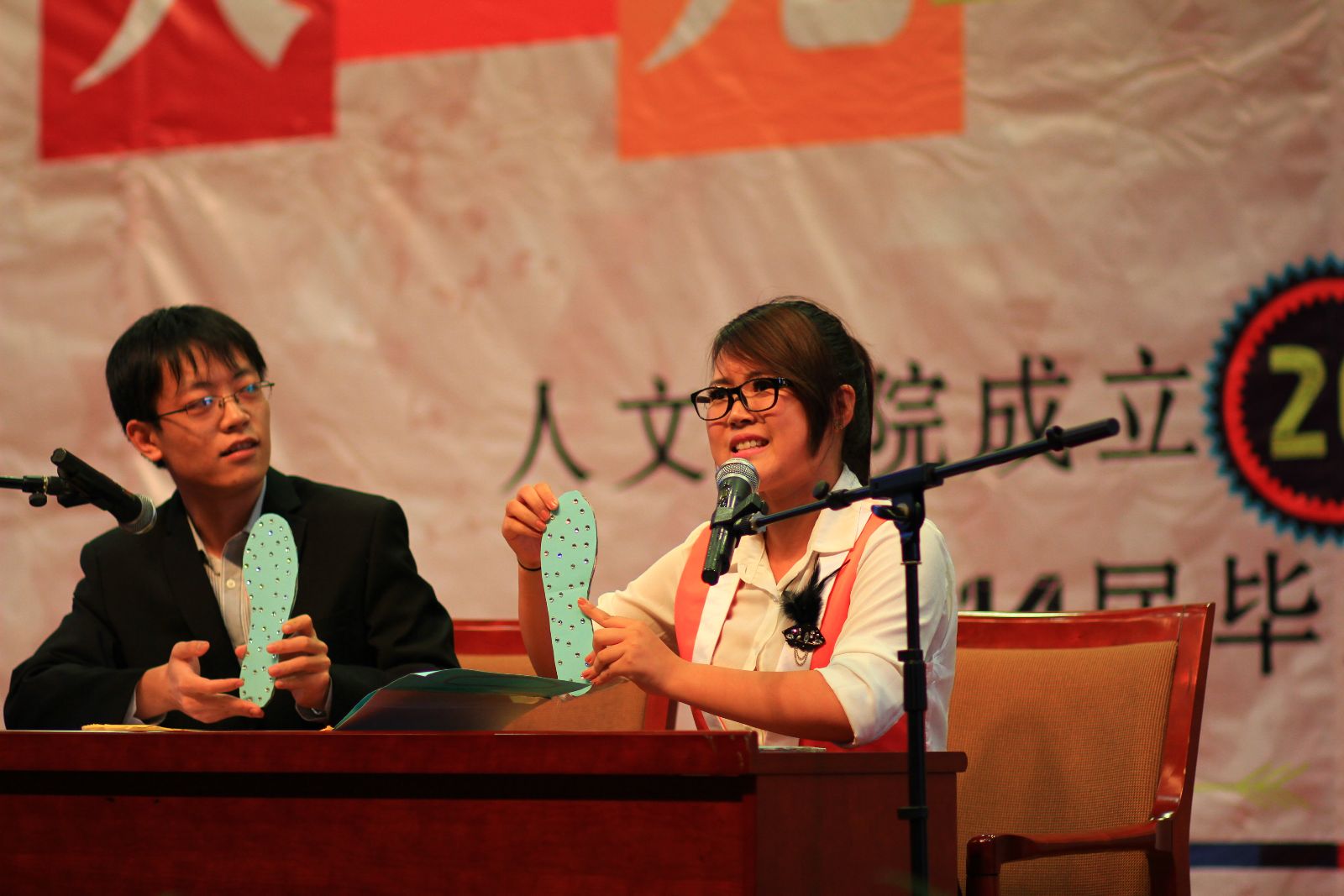 社会学系的硕士生用一首《奔跑》掀起了本场晚会的第一个高潮,他们的歌声正代表了人文学子的青春与活力。Corner choreo交大舞团职业编舞伴舞工作室娴熟的街舞《Choreo》向我们展示了舞蹈的魅力。文艺学的陈晨同学在小品《超幸福鞋垫》中展示了人文学子的诙谐幽默与伶牙俐齿。一段《精武门》,一个八尺男子汉,一袭黑衣,太极、双节棍、流星锤,让在场观众沉浸于武术的魅力之中。