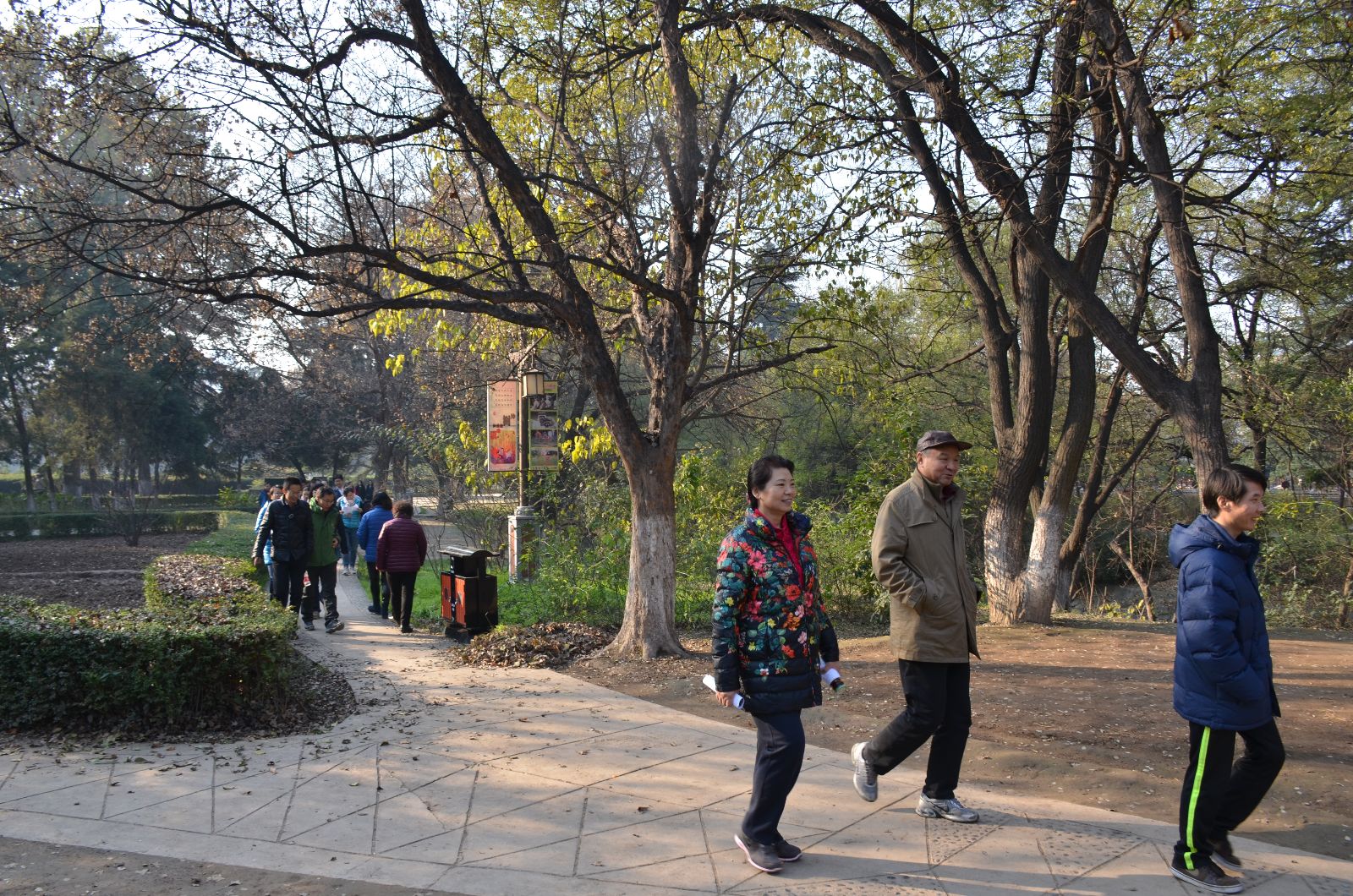 第一期健身活动——“兴庆湖畔健步走”正式开始。来自学院各个系的三十多位教工身穿运动衣,脚蹬轻便鞋,昂首阔步,沿着兴庆湖畔快步行进。健步队伍当中有知名的老教授,也有新加盟的青年教师。在焦垣生教授的带领下,大家沿着兴庆湖畔边走边聊,队伍里不时传出欢快的笑声;有的在健步途中,摆个造型,留下倩影;有的边走边沉浸在“片片枫叶情,浓浓秋冬意”的美好意境中。健步走环湖两圈,总长5公里,一个小时走下来,教工们面色红润,微微出汗。凡是参加活动的老师都获得了一份温馨的礼物,突出了健身活动的参与意识。