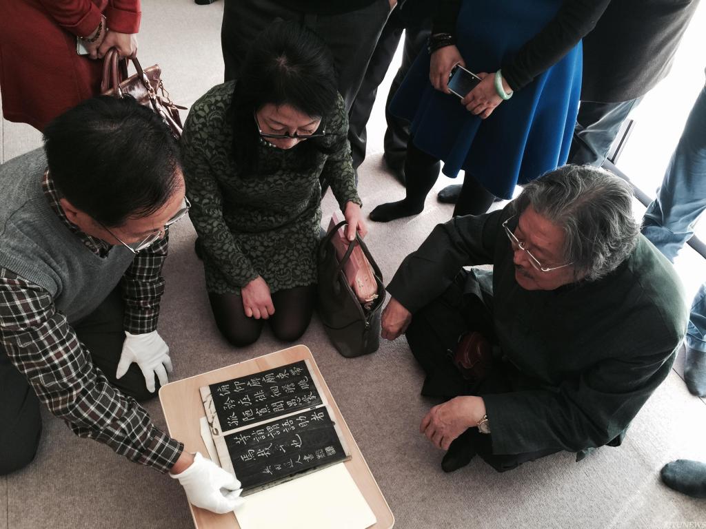 钟明善教授在野田神社鉴赏古代碑帖