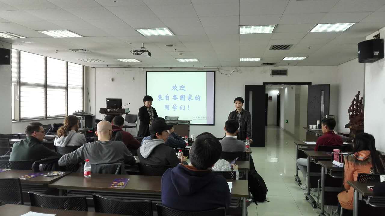 书记马晓彬为留学生介绍了学院整体情况、系所设置、师资队伍。杨院长用生动活泼的PPT为留学生展示了学院于2015年招收的第一届“中国文化研究硕士”留学生班教师授课、社会实践、课外活动等多方面信息。杨院长指出该留学生项目实行学分制度,学生可根据课程的规定选修科目、积累学分,辅以实习实践和实地考察等内容。