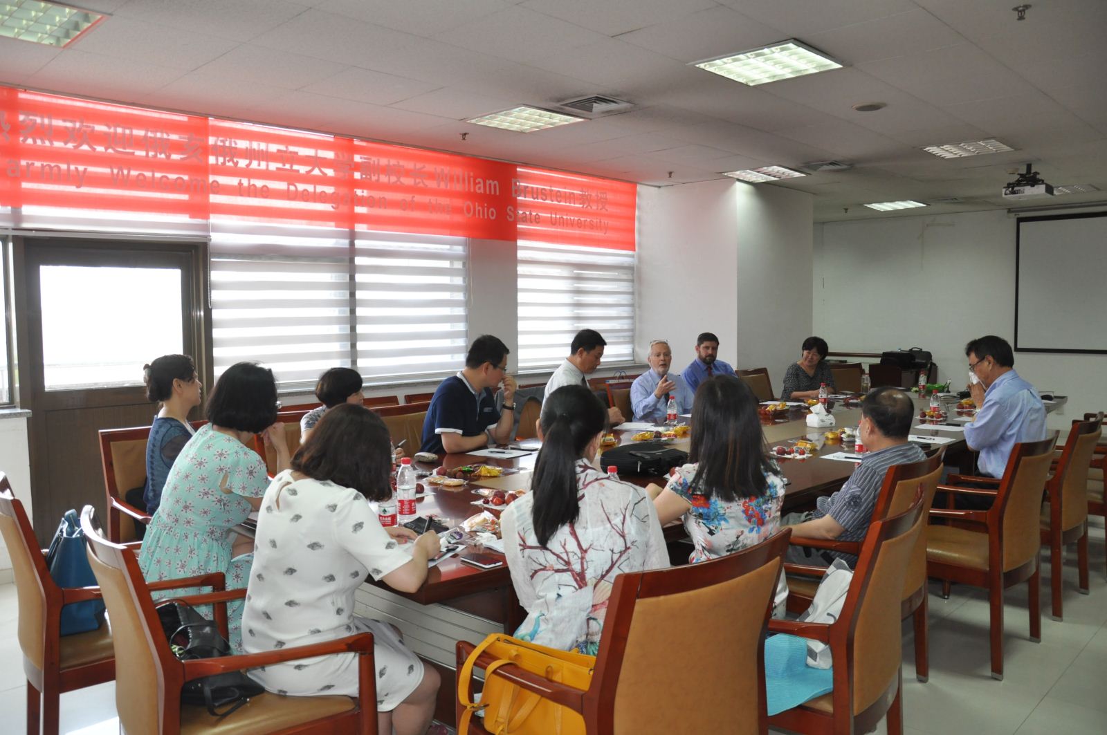 社会学系主任陈皆明教授、中文系支部书记罗军凤副教授、哲学系副主任王小红副教授、传播系新讲师徐婧博士、艺术系副教授杨眉博士、书法系支部书记杨晓萍副教授代表各系分别介绍了本系情况。Brustein教授也为在场各专业教师介绍了俄亥俄州立大学情况。他表示俄亥俄州立大学是全美最大的大学,其中最大的学院是艺术与科学学院。该学院很多专业都与成人影视片