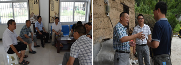 晚上调研组和平利县委郑小东书记、陈永乐副县长、高忠权副县长等进行了座谈,边燕杰院长、马晓彬书记分别介绍了前期调研情况和西安交大对口扶贫工作的相关情况,双方就平利县依托西安交大的教育科技资源实现脱贫进行了深入交流,并就发挥学院学科专业优势,在扶贫调研、干部培训等方面开展对口支持达成了初步意向。第二天调研组又深入到了长安镇双杨村走访贫困户,与县委办邓文明主任、双杨村干部等进行座谈,深入调研双杨村通过发展绞股蓝等产业实现脱贫的状况。