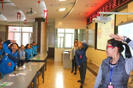 活动的第二个环节,在《飞向理想》的美妙歌声中,大学生志愿者带领同学们跳起了律动操,虽然同学们的动作不是十分整齐,可是都随着音乐认真努力的跳着,律动活跃了课堂的气氛,拉近了参与者之间的距离,也跳出了孩子们心底的理想,梦想就是生命中的一双翅膀,惟有梦想的力量,才能激励和激发我们的生命。