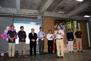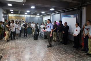 参观结束艺术系主任张伏虎老师总结陈辞并进行剪彩合影,宣布2017届成人影视片