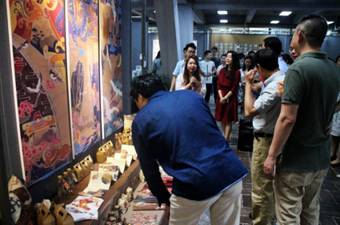 最后由艺术系薛卫真老师带领校领导参观毕业生的展览,由学生陪同讲解。