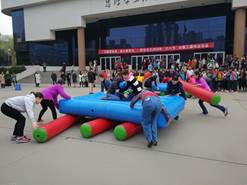 3月5日下午,由校工会、校女工委在思源南广场举办“巾帼展风采、奋斗勇争先”——西安交大庆祝“三八节”女教工趣味运动会热烈。我院女教工们积极报名参加了此次庆祝活动,共有十多位女教工报名参加了此次庆祝活动。比赛开始前校党委常委、统战部部长张定红参加活动并致辞,校工会副主席张庆生主持开幕。为体现“团结、协作、奋斗、争先”的主题,此次运动会项目作了精心设计,准备了同舟共进、追赶超越、奋勇向前和团结一心四个项目。这些项目都需要参赛的团队人员之间要分工协作、密切配合才能顺利完成,每个项目既有技巧性同时又考验每个团队人员之间的相互协作性,虽然天气不太好,中间还有下小雨,但丝毫不影响大家参加比赛的兴趣和热情,整个比赛期间,成人影视片