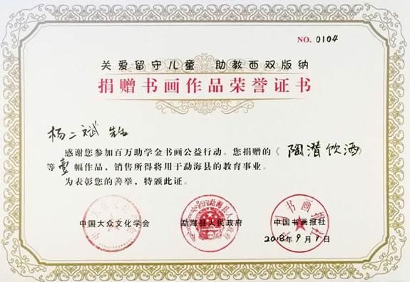 参加中国大众文化学会、中国书画报社主办的公益行动
