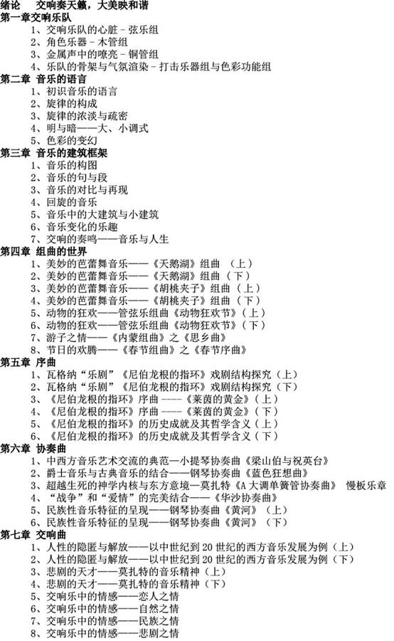 5、欣赏作品的跨度很宽,中西对比,古今贯通。有世界名曲,也有经典影视交响配乐;有西方的作品,也有中国的作品;有西方经典交响音乐,也有当代创作作品。