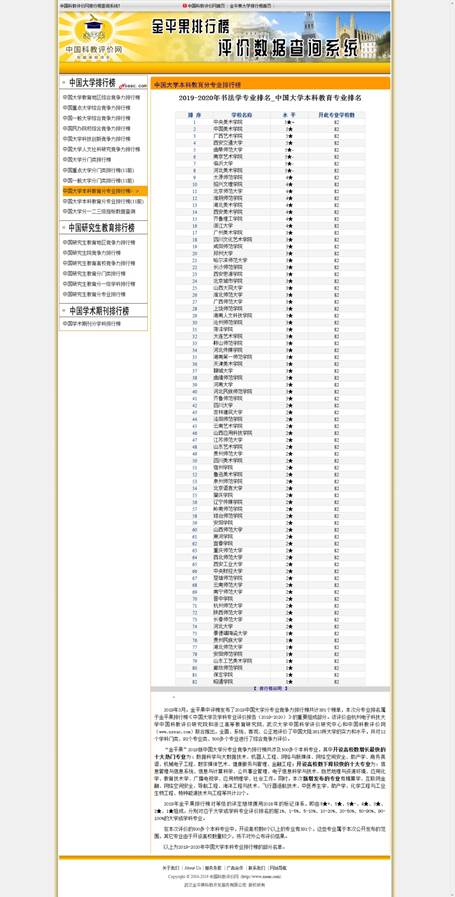 “中国科教评价网”是国内第一家综合性、学术性、权威性、实用性和全球性的评价网站,该评价由杭州电子科技大学中国科教评价研究院和浙江高等教育研究院、武汉大学中国科学评价研究中心和中国科教评价网(www.nseac.com)联合推出,全面、系统、客观、公正地评价了中国大陆2613所大学的实力和水平,并对12个学科门类、92个专业类、500多个专业进行了综合竞争力评价。