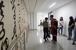 发表了热情洋溢的讲话,他指出交通大学在历史上有着悠久的人文传统,沈曾植、叶恭绰、李叔同、谢无量等一大批书法、文化大家筑基了交大文脉,故开展书法教育正是在恢复交大的人文传统,也是交大迈向世界知名大学的重要举措;并提出作为一名书法专业的毕业生,弘扬中华民族优秀传统文化是分内之责;同时,他赞扬同学们为创新港人文社科研究院的室内空间所进行的艺术创作诸体兼备、形式多样,“几件大作品写得非常震撼,这些作品体现了同学们深厚的书法功力和创造能力”,高度肯定了本次学生毕业展览作为创新港第一个室内展览,在中国西部科技创新港的文化建设、内涵建设等方面所做出的贡献。