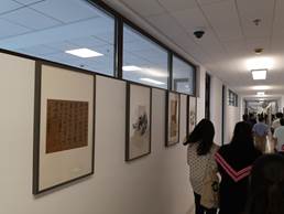 中国书法系书法51班9名毕业生完成,展览共展出书法、篆刻、国画作品48组、99件,作品形式和装裱样式专为创新港人文社科研究院办公空间定制,五体具备,形式多样,有30多平方米的巨制,也有一平方尺的小品。这些作品既是毕业生对传统文化艺术的学习汇报,也是包含着浓浓的祝福,献给中国西部科技创新港的启航贺礼!件件功底扎实、文辞讲究,与创新港空间和谐相融,吸引了众多师生、家长及书法爱好者前来观展。