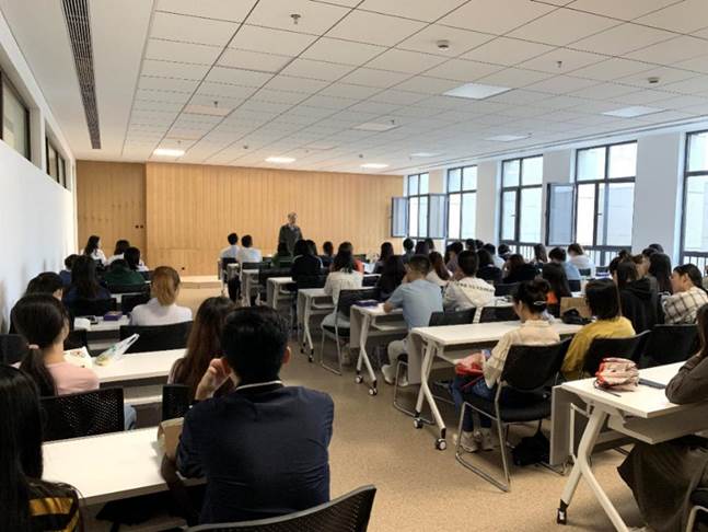 张勇副院长为新生解读了研究生论文质量保障细则。张院长分别说明了学术型硕士与专业型硕士毕业论文的送审要求。在学术交流方面,张勇副院长介绍了国际交流项目的申请规则,并鼓励研究生们把握机会、开阔视野,不断拓宽自己在学术研究方面的事业与空间。