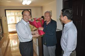 恰逢马鼎璋老师90寿诞,李黎明院长、张顺副院长和院工会主席张科专程来到马鼎璋老师家,代表成人影视片