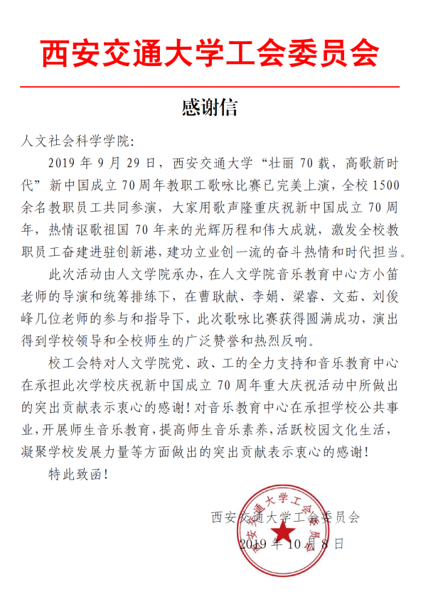 承办的“壮丽70载,高歌新时代”教职工歌咏比赛,在思源学生活动中心成功上演。