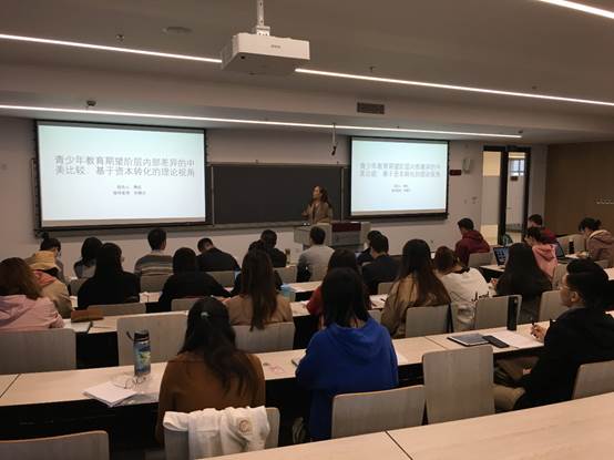 的支持下,实证社会科学研究所秋季工作坊第四期活动在创新港校区涵英楼5-7043举办。本期工作坊由社会学系博士生韩红报告,主题为《青少年教育期望阶层内部差异的中美比较——基于资本转化的理论视角》,这是她在美国博士联合培养期间完成的研究成果,社会学系主任卢春天教授、郝明松老师出席本次讲座,杨江华副教授主持报告。