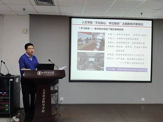 召开“不忘初心、牢记使命”主题教育工作总结大会。学院领导、党委委员、全体教授、系所(中心)主任和副主任、教工党支部委员、学生党员代表等参加会议。学校第十一指导组联络员石桥到会指导。会议由院长李黎明主持。