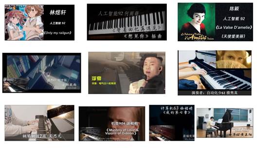 之前《钢琴演奏表演艺术》课程每学期末都会以现场音乐会的形式作为结课考试的形式,这种形式能充分挖掘普通高校大学生的艺术鉴赏与审美能力。由于疫情的影响,本学期钢琴课的结课展示则以主题为“影视剧中的钢琴音乐”云音乐会的方式呈现,相较于以往的汇报演出,视频展示虽然没有了现场的气氛烘托,却使得展示方式更加多样化。未返校时,教师在课堂上组织大家在线观看视频,并通过语音互动讲解;返校之后,教师采用线下一对一辅导,指出问题并现场演示。在后期的音乐会视频制作过程中,学生分为不同任务小组,充分体现了团队合作与协商的能力,学生的协作能力、动手能力、创新思维,尤其是视频制作能力都获得了十足的锻炼。