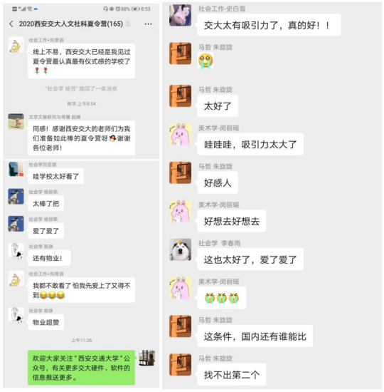 开营仪式结束后,学院带领营员们线上参观西迁博物馆,带同学们回顾交大发展的历史进程与成就。到场的32名同学参观了人文与社会科学研院、朗园宿舍等创新港学习和生活环境。营员们纷纷表示,这是自己参加过的“最有仪式感的”夏令营,他们对学校、学院所提供的软硬件条件非常满意,报考西交成人影视片