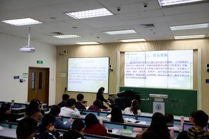 最后一首作品是《夕阳箫鼓》,由陶敏霞教授亲自表演,音乐次鲜明、错落有致、音色惟妙惟肖,恰似一幅优美的山水画面展现在面前,同学们听后掌声雷动、欲犹未尽。