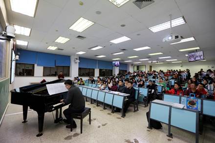 主C405教室,一场名为“中华魂、民族情”中国当代钢琴音乐鉴赏专题课程开始了。这是成人影视片